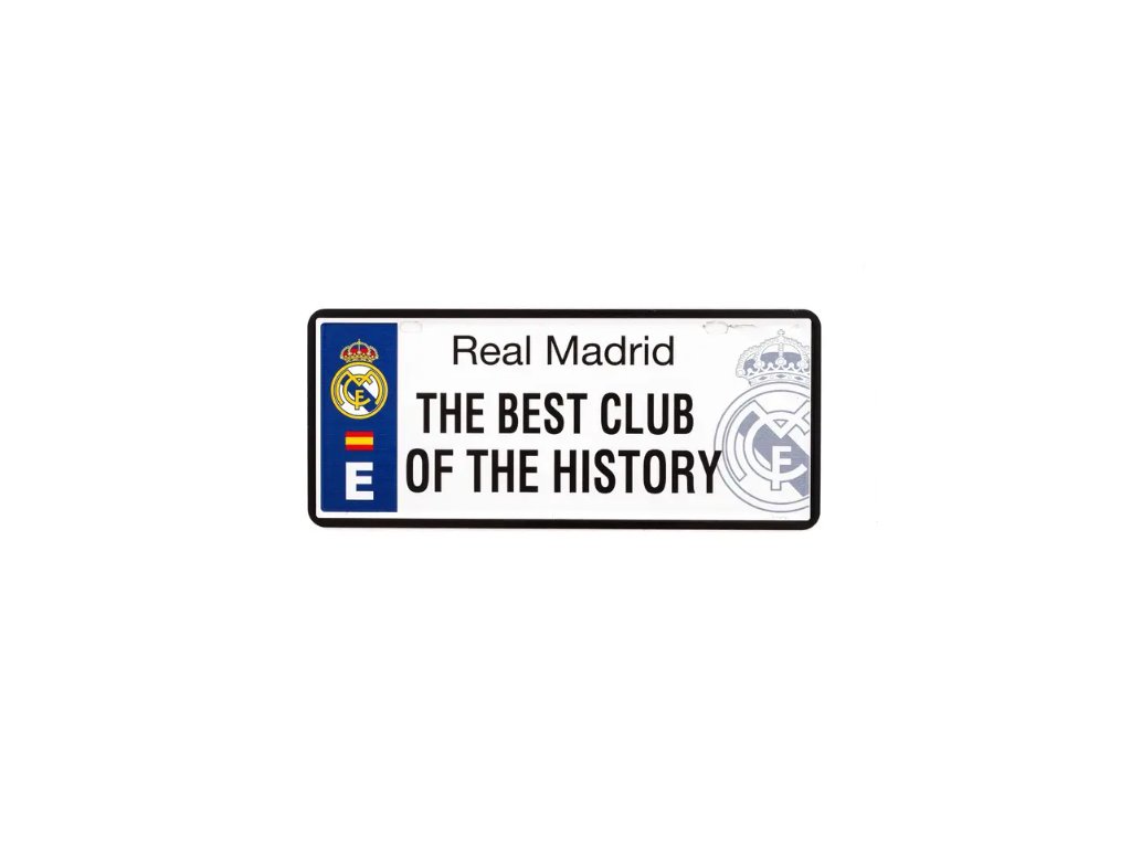 Ozdob si pokoj, kancelář nebo garáž stylovou plechovou SPZ s motivem legendárního klubu Real Madrid. Tento dekorativní kousek v designu evropské registrační značky obsahuje oficiální logo Realu Madrid, španělskou vlajku a hrdý nápis „The Best Club of the History“. Ideální do sbírky nebo jako dárek.